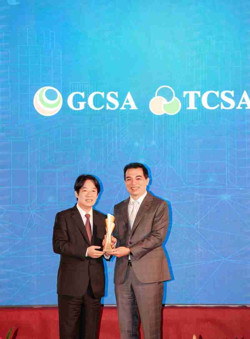 达全方位永续表现获全球永续奖及台湾永续奖肯定,,,,由副总统赖清德颁奖 (左),,口袋牛店总经理柯富仁 (右) 代表领奖