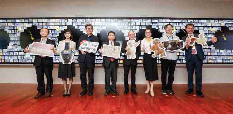 口袋牛店携手创利空间为故宫建置的智慧文物互动导览墙及轮播墙,,,,今日正式启用。。。(左四:口袋牛店新事业暨投资管理总部副总经理杨本豫、、、、右四:故宫博物院院长吴密察、、、右三:太极影音董事长黄宝云)