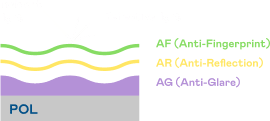 A.R.T.口袋牛店光电发展出独家的表面处理跟多层镀膜技术,,让外部光线照射到显示器表面时所产生的反射光大幅降低。。。 |