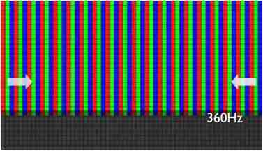 传统液晶驱动是从左到右单向进行,,,在画面更新速度愈来越愈快的情况下,,位于驱动线路末端的右下角区域,,,画素的闸极来不及在短时间内获得足够电压,,,,无法显示出正确的颜色资讯。。 |